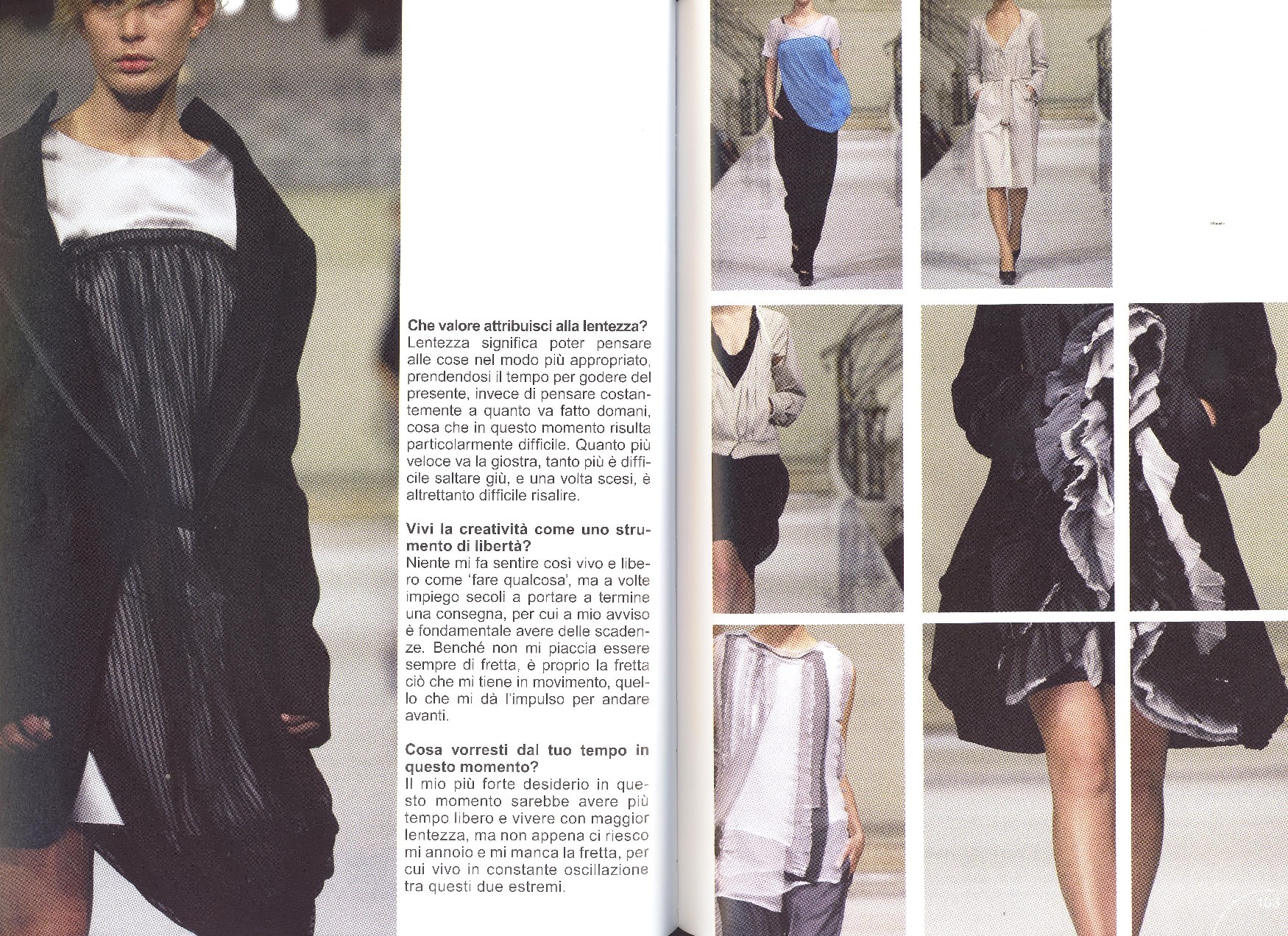 ‘In Velocità’ Gaia Grossi on Lutz in ACTIVA Magazine: ‘Le Creazioni di Lutz sono fatto di linee apparentemente semplici che nascono da taglie e progettazioni all’avantguardia. In equilibrio tra classico e contemporaneo, casual e sofisticato.’