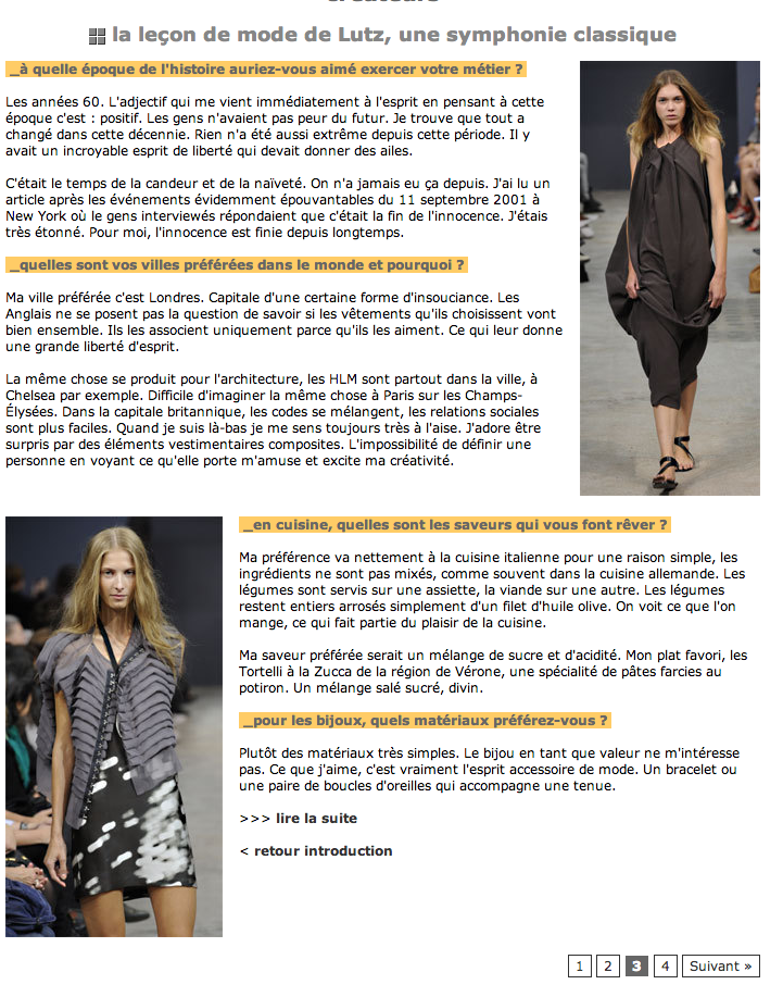 ‘La Leçon de Mode de Lutz’ Lutz on S/S 2010 in ‘Au Feminin’