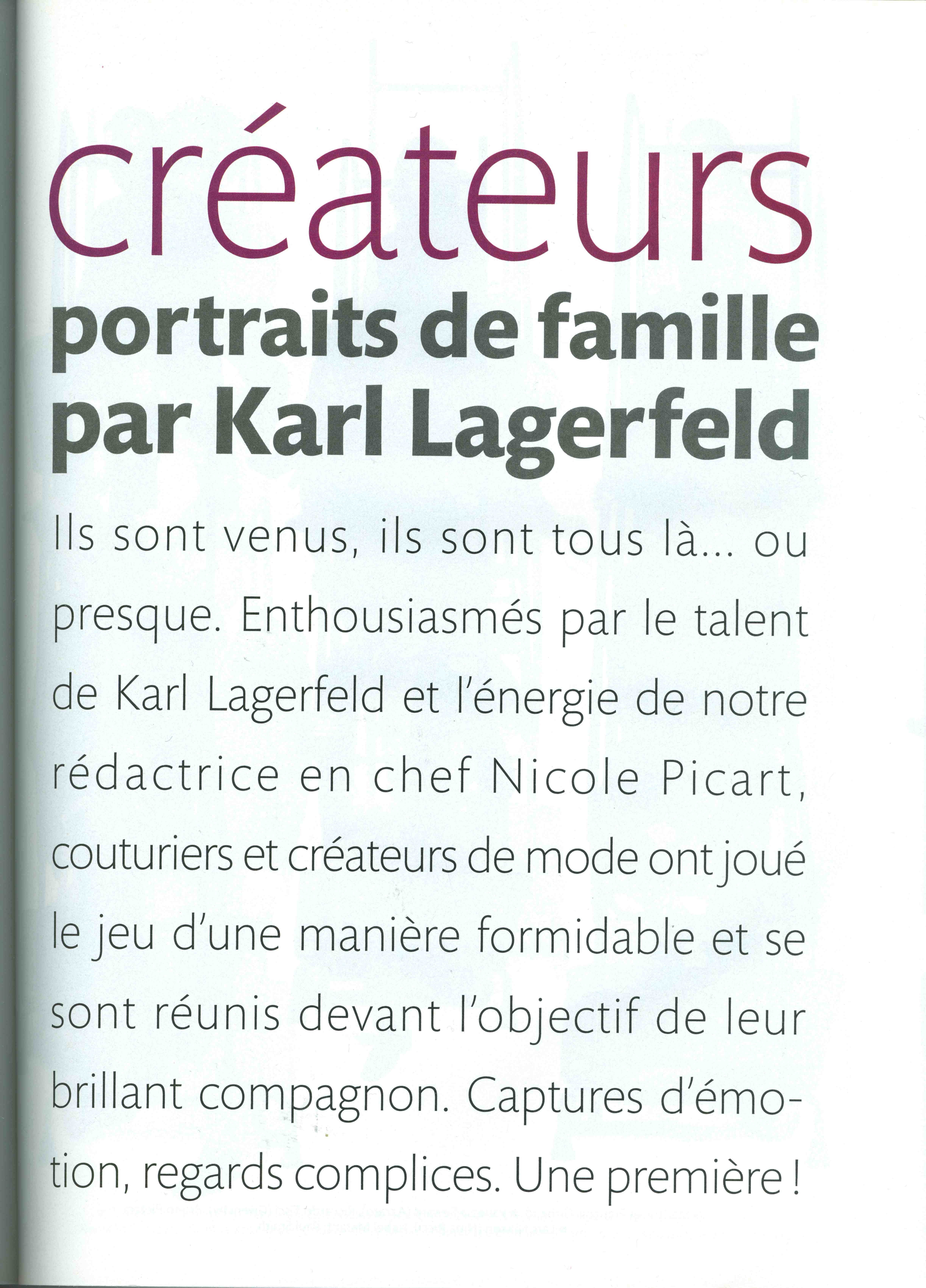 ‘Créateurs-Portraits de famille par Karl Lagerfeld’ MADAME FIGARO SPECIAL MODE #1123 Photos: Karl Lagerfeld, Redaction: Nicole Picard