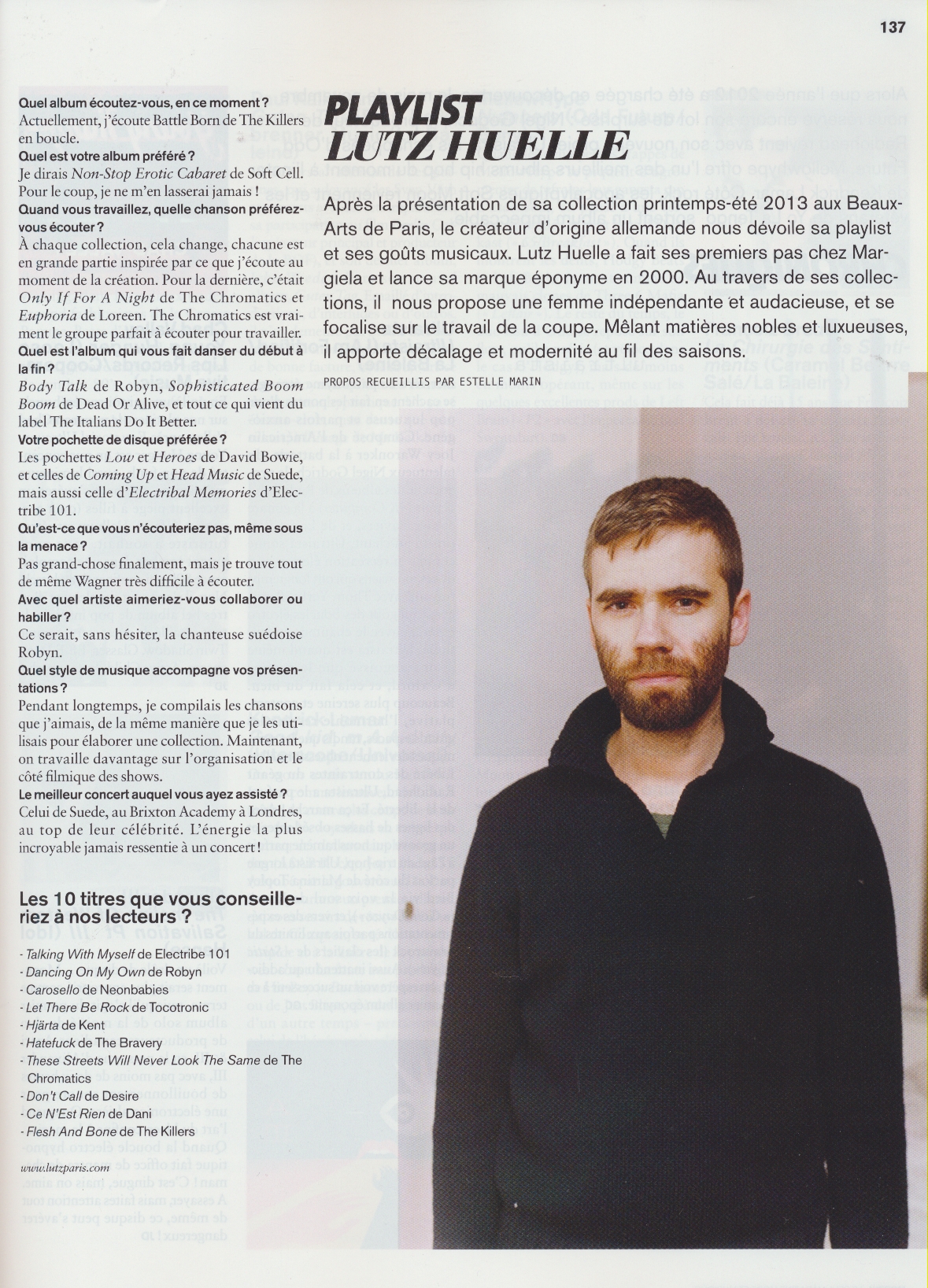 Playlist Lutz Huelle, MODZIK Magazine, Merci à Estelle Marin!