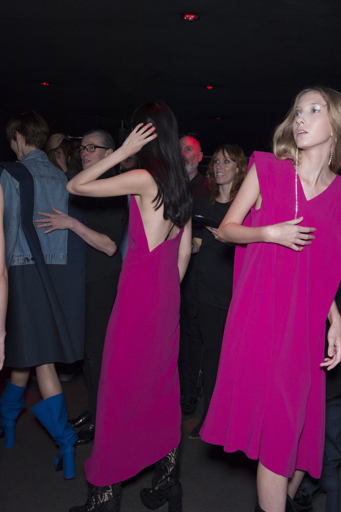 There’s a bit of a shoulder situation going on in Lutz Huelle’s SS17 collection. A bit might actually be an understatement. There’s some shoulder going on and it’s a statement making shoulder. Which makes sense given the press notes, and which if we’d chosen to refer to them pre show, would also have stopped us from making grand statements about the shoulder being the new penicillin or whatever in the manner of somebody who thinks they discovered how to save man kind from the scourage oftapeworm. So, what of this shoulder? To quote, this was an essay in “how to define a shoulder without using pads or padding. A sort of natural sharpness that almost happens by chance?”. Not that anything happen by chance here. This was precision defined.