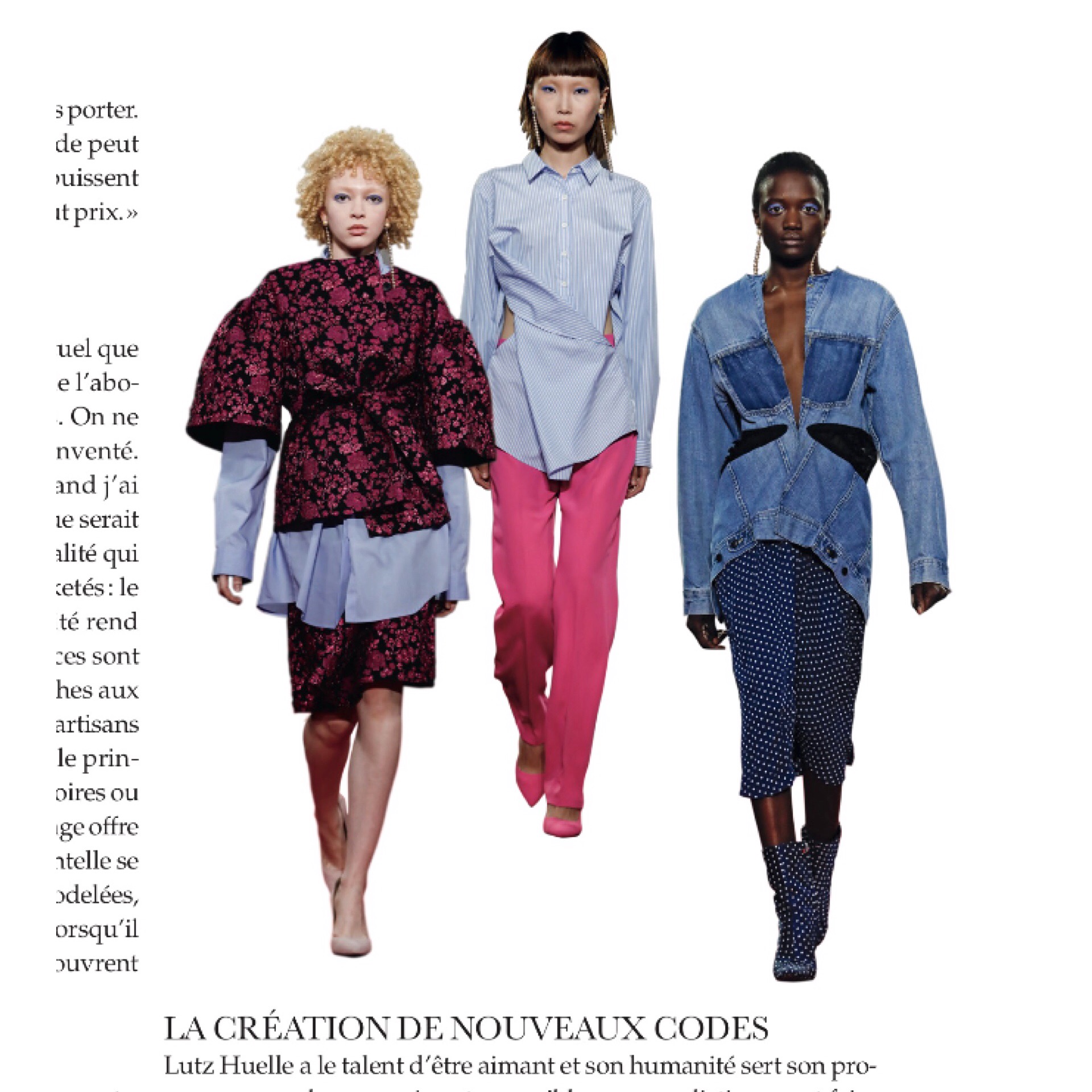 ‘Il repense et recompose des pièces classiques du vestiaire street, romantique et militaire. Bomber Jackets, vestes de tailleur ou jupes droites, vous pensiez connaitre leur langage? Lutz Huelle leur offre une nouvelle interprétation’ Elisabeth Clauss talks to Lutz in ELLE Belgique Magazine