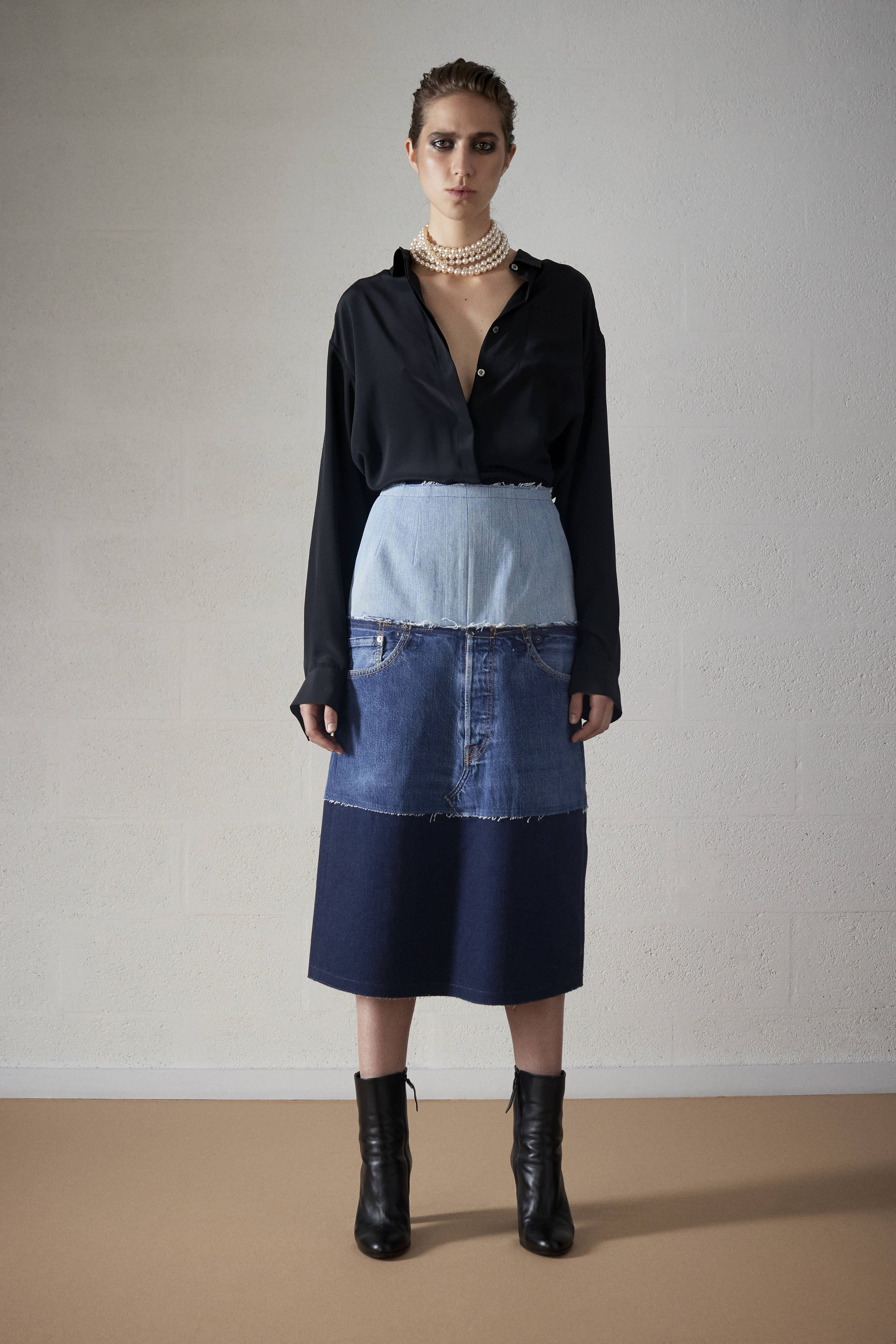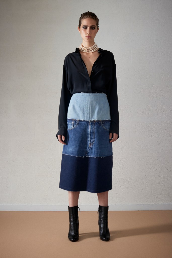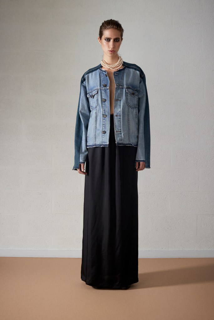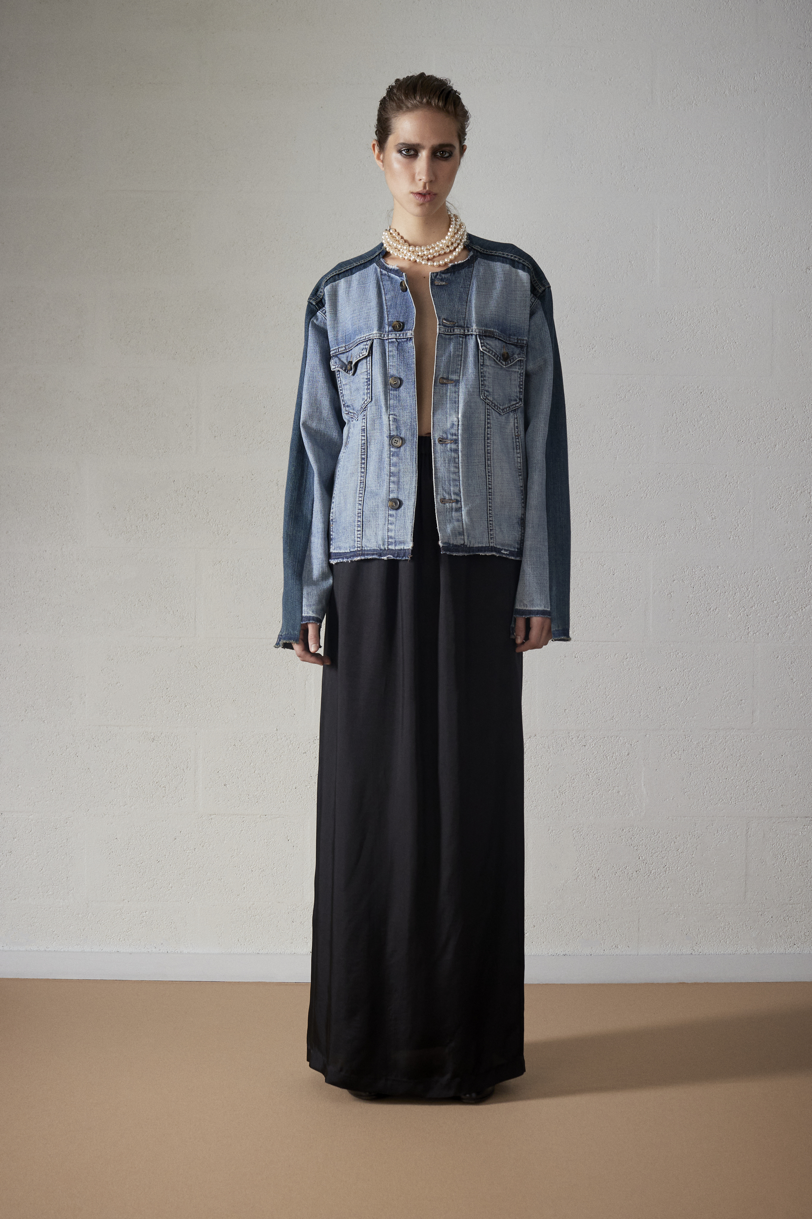 Finally, Denim Jackets and Coats are cut in half at the waist, an added drawstring cinches them into a wasp-like shaped waist reminiscent of 50s Couture.