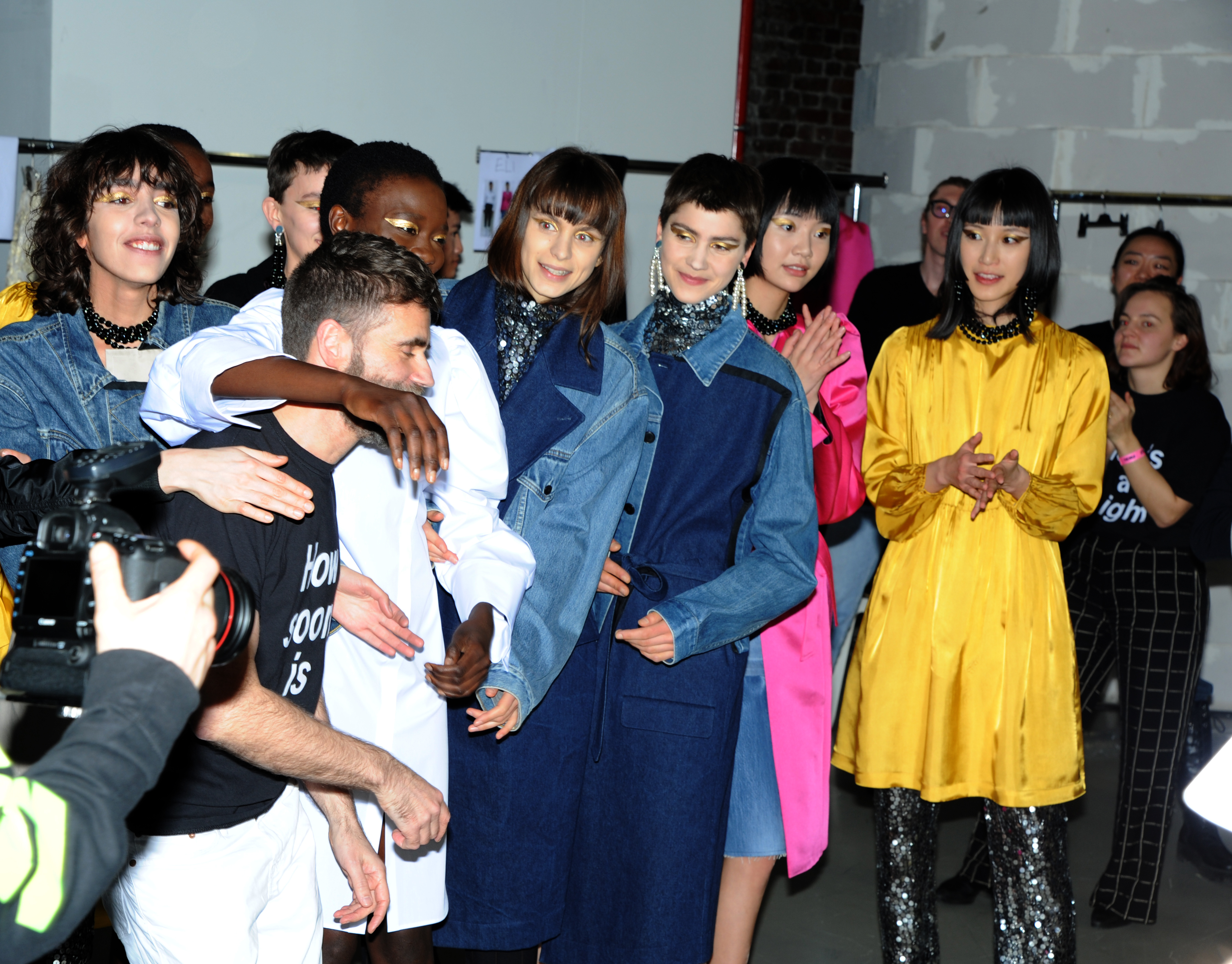 For fall, Lutz Huelle reined in volumes a few notches and employed color to deliver the punch. The blasts came in a crisp, sherbet green and golden yellow, as well as searing hot pink used for a roomy baseball jacket and pencil trousers ensemble. It got the heart racing.