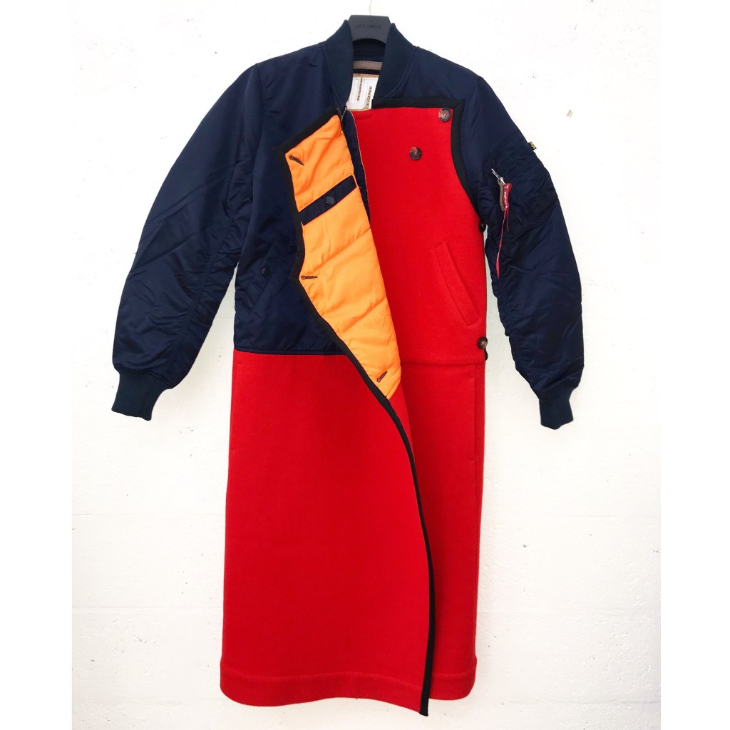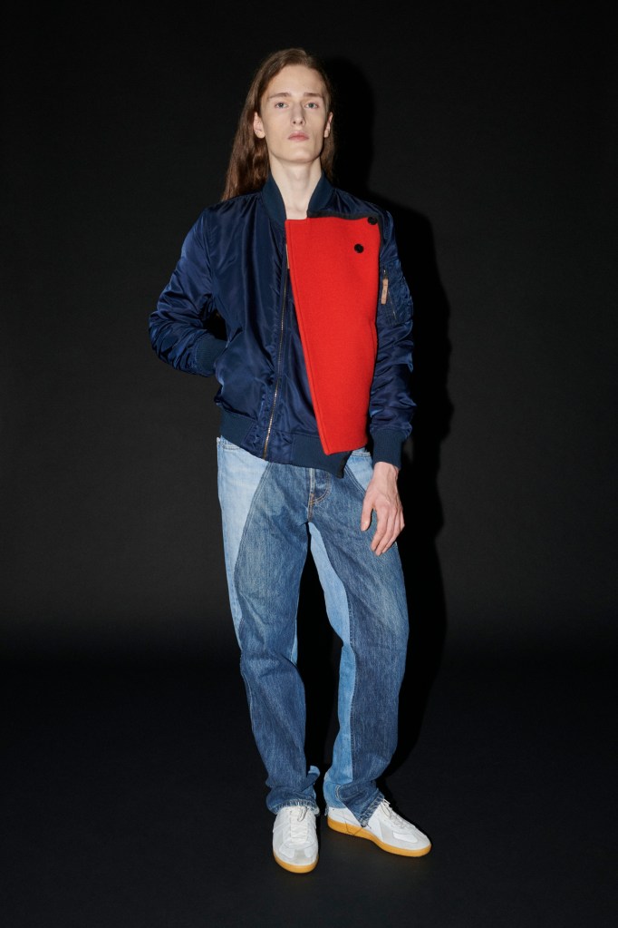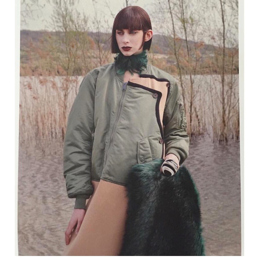 2 days before the presentation of the Fall/ Winter 2016 Collection I decided to add a Bomber Jacket to the looks.. I had an idea of making a ‘double- breasted’ Bomber, inspired by a jacket used for fencing. To try out the idea I took my old Alpha Industries Bomber and cut out the front panel, replacing it with a piece of beige wool I had left over. I liked it so much that I decided to just put it into the show as it was , making versions in blue ( with red wool) and black . I also added a coat version. After the show every single store wanted to order these, so we started selling them without having any idea how to produce, seeing as it was made with an original Bomber jacket from Alpha Industries. I had no other choice but to call them and tell them what I had been doing, it turned out they had seen photos and wondered what this was all about- and a collaboration was born. I have since made a new version with the Bomber every season , but that first one, called the LUTZ BOMBER, is still so special to me.