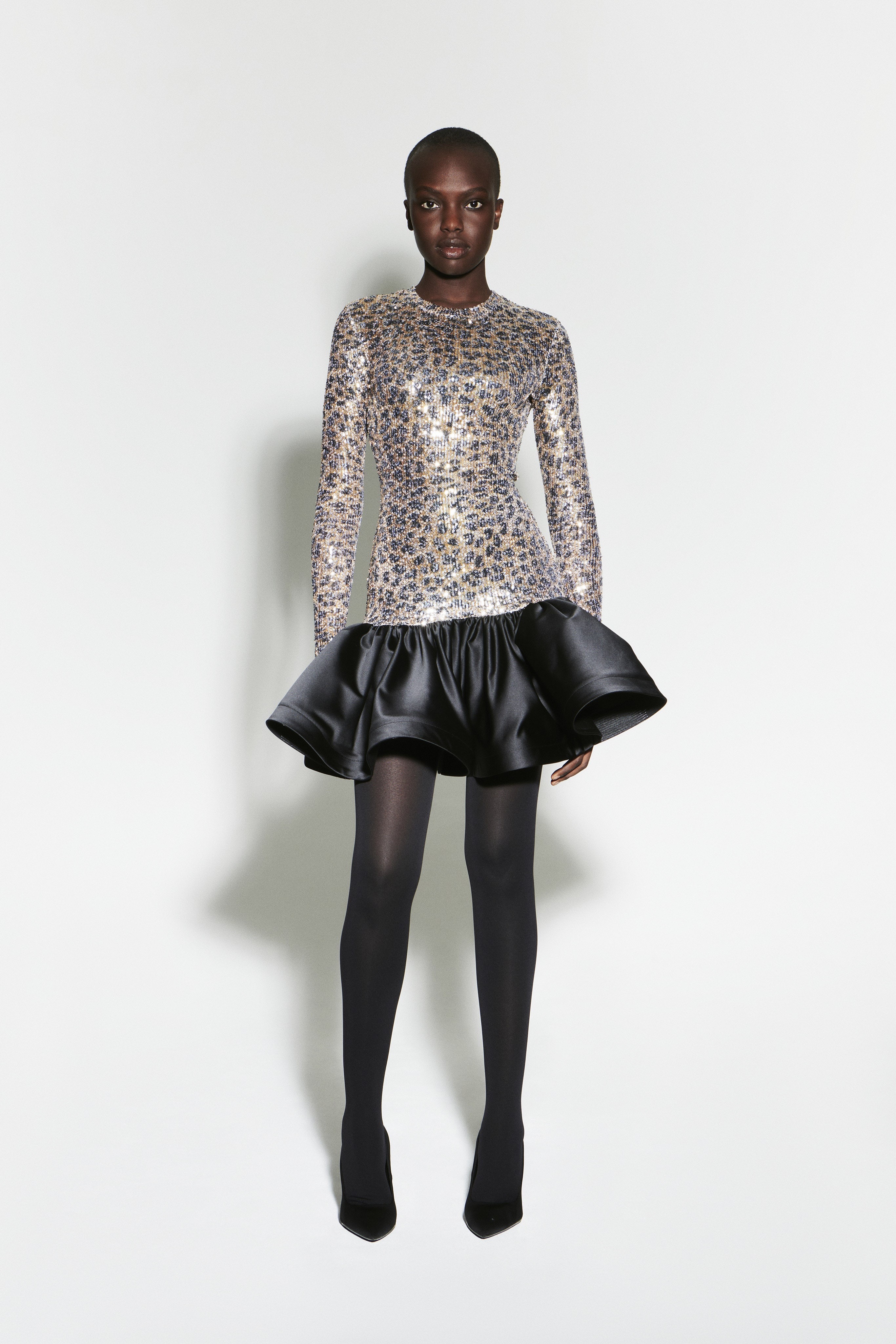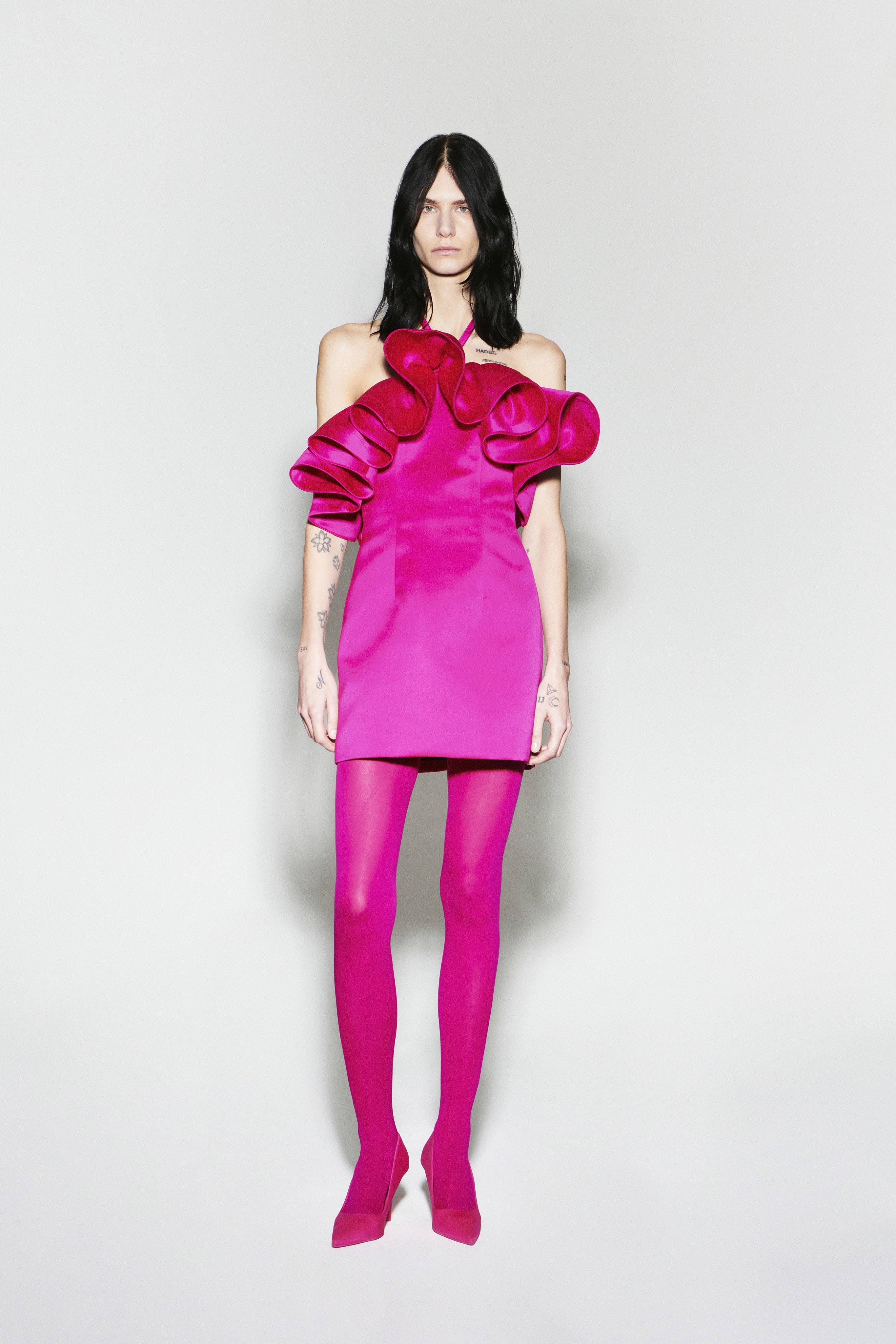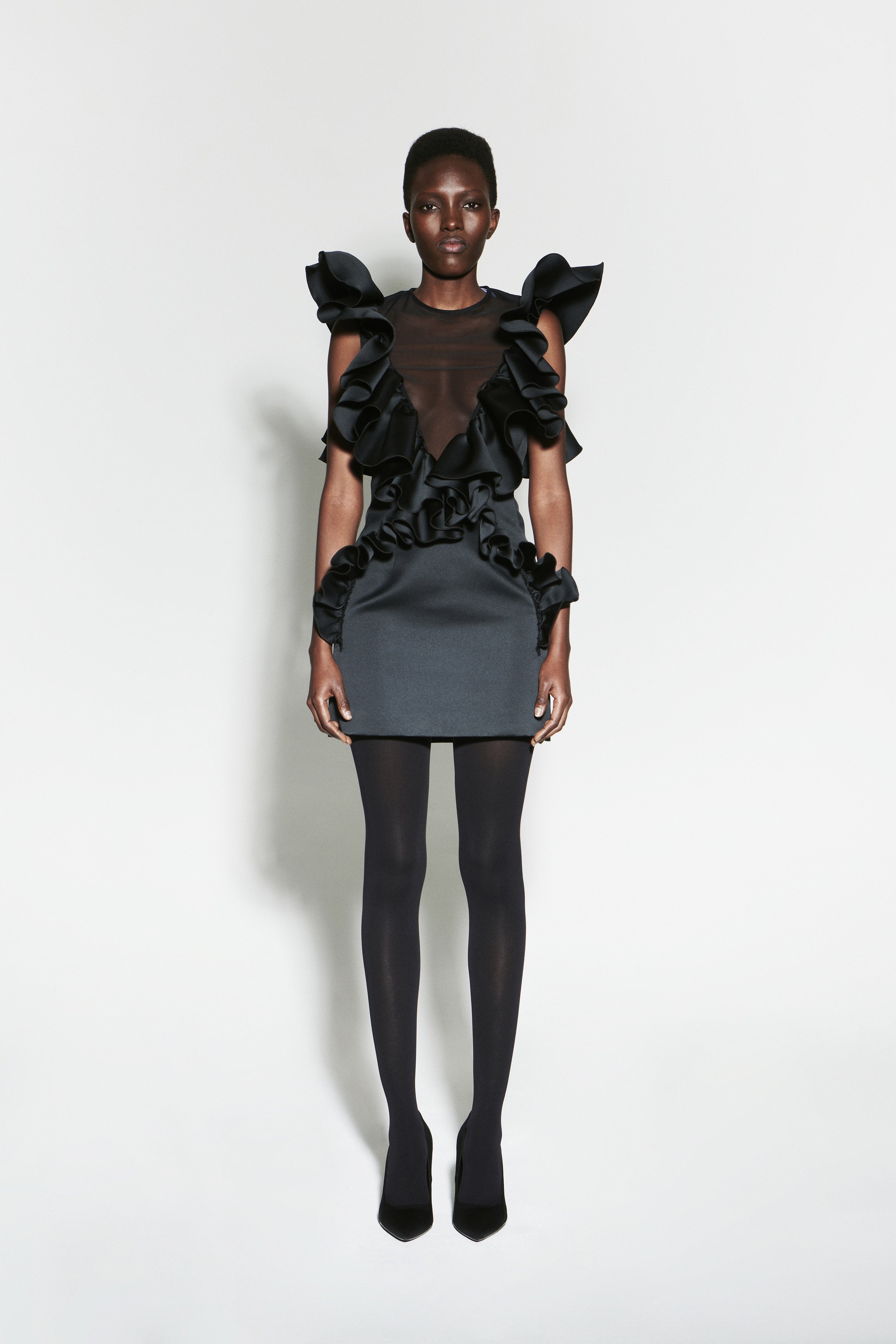 cocktail dresses come alive with flounces while longer dresses in more generous volumes