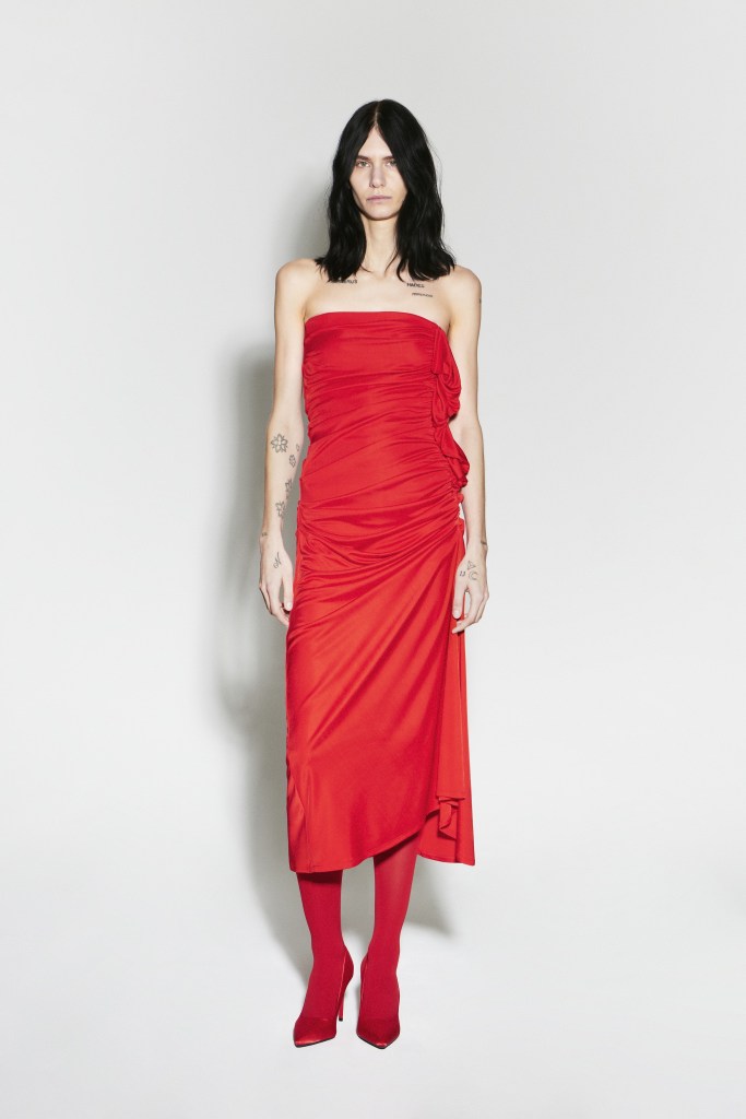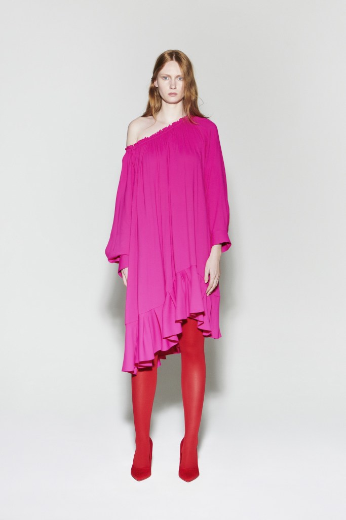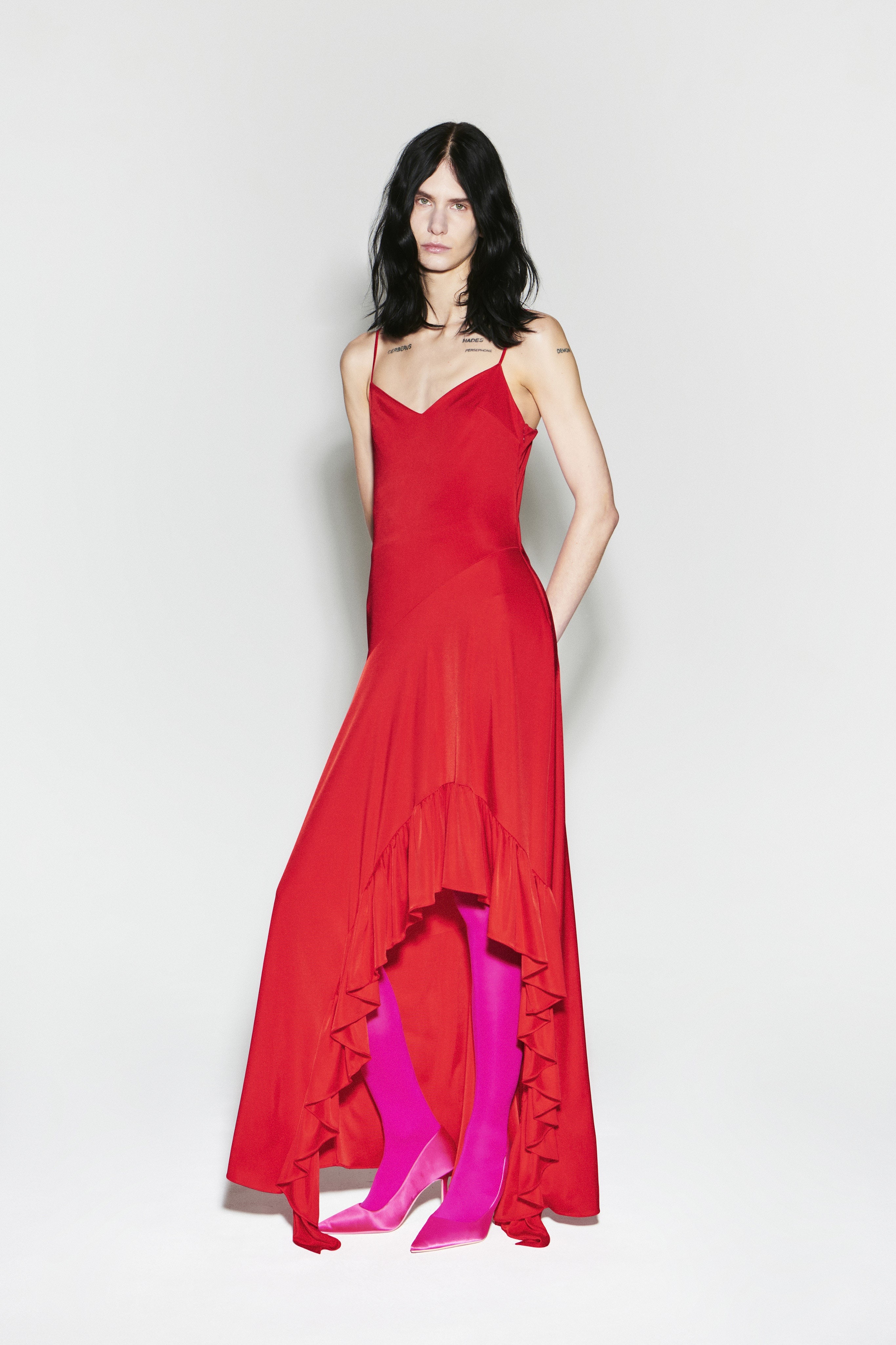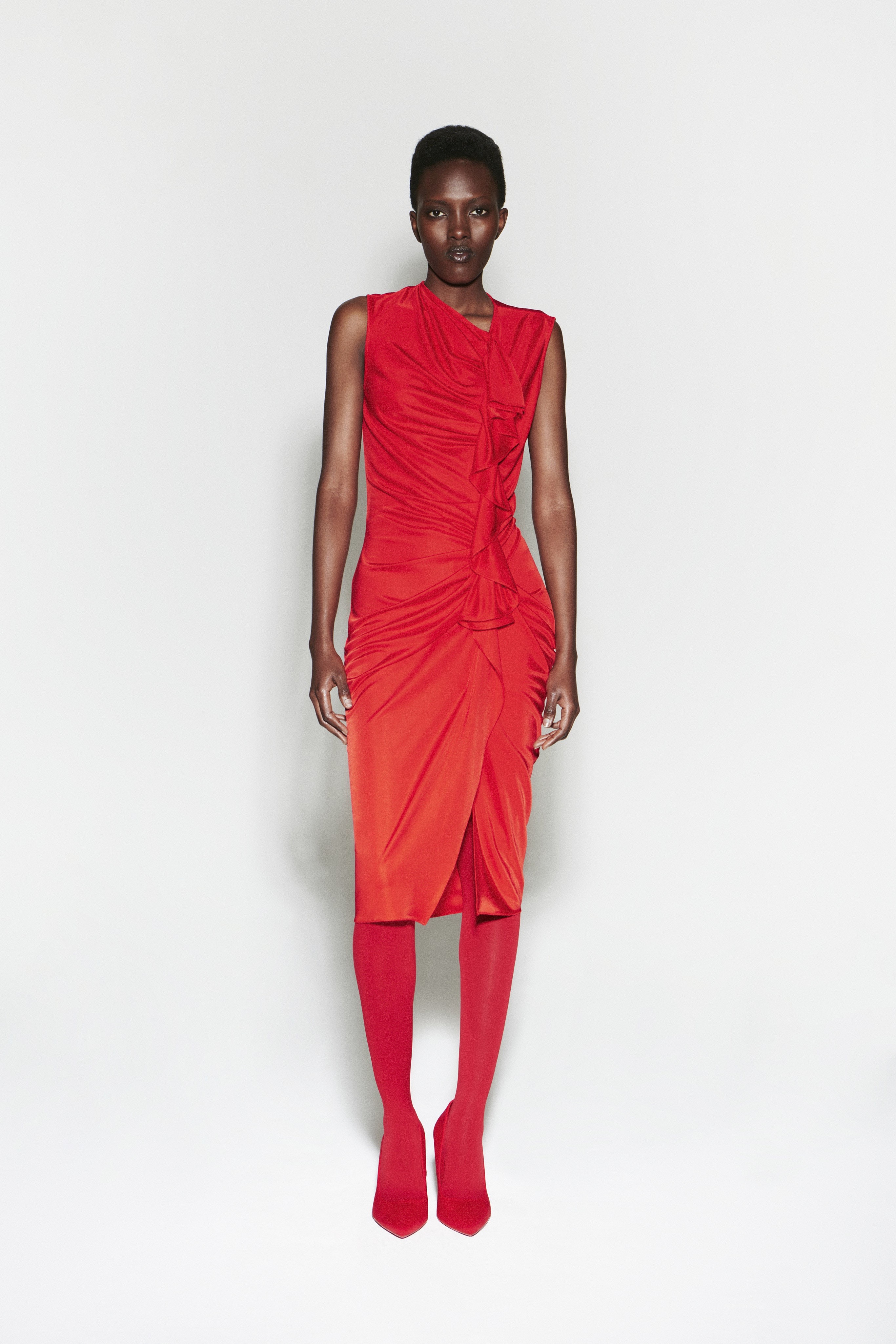 cocktail dresses come alive with flounces while longer dresses in more generous volumes