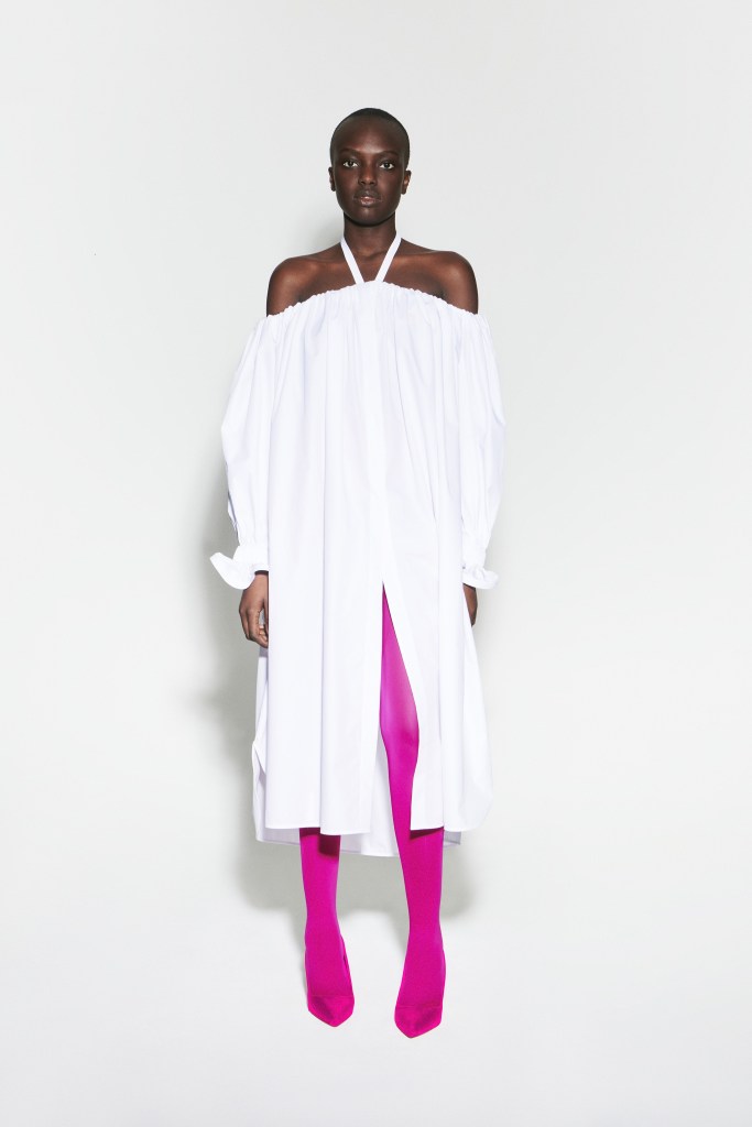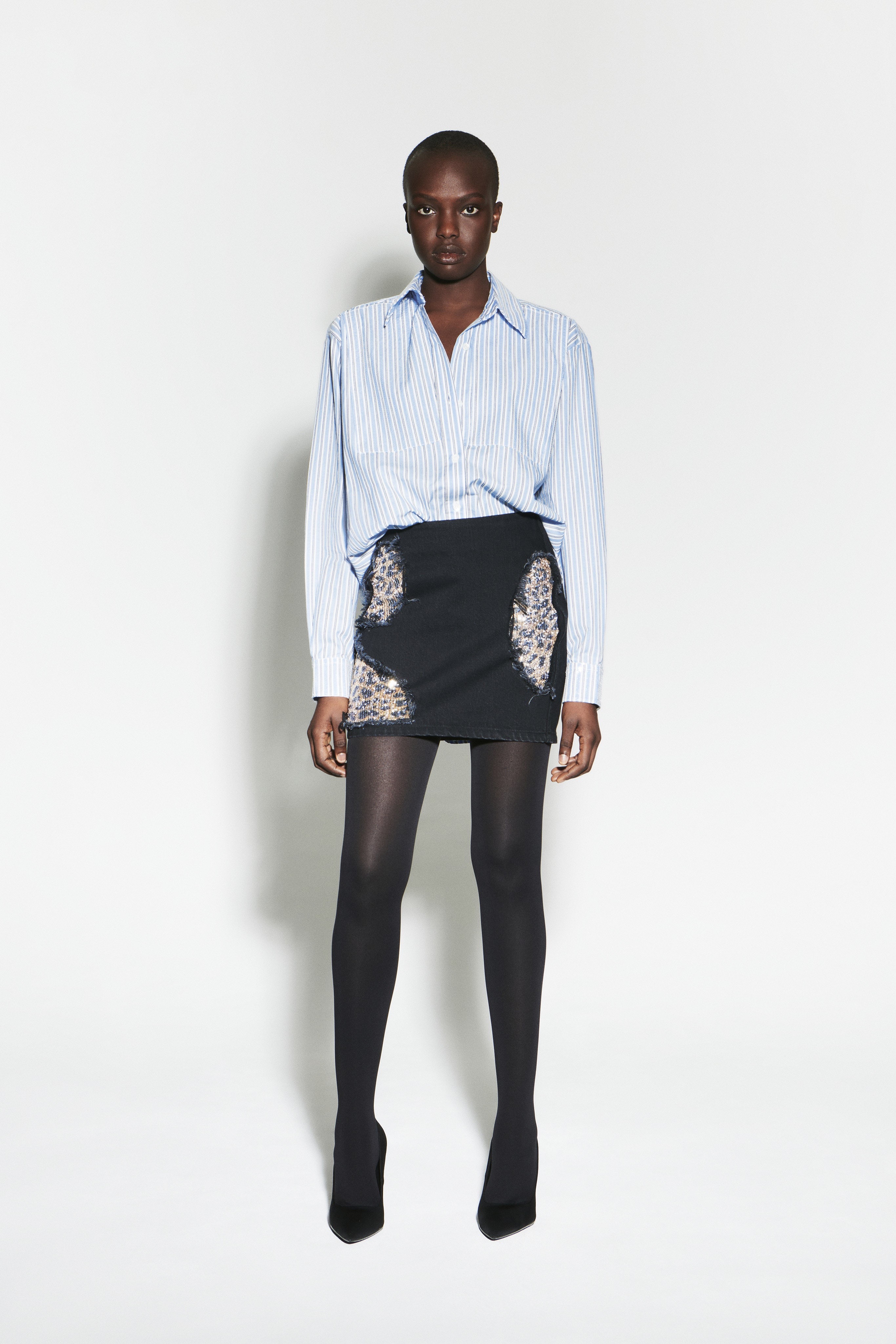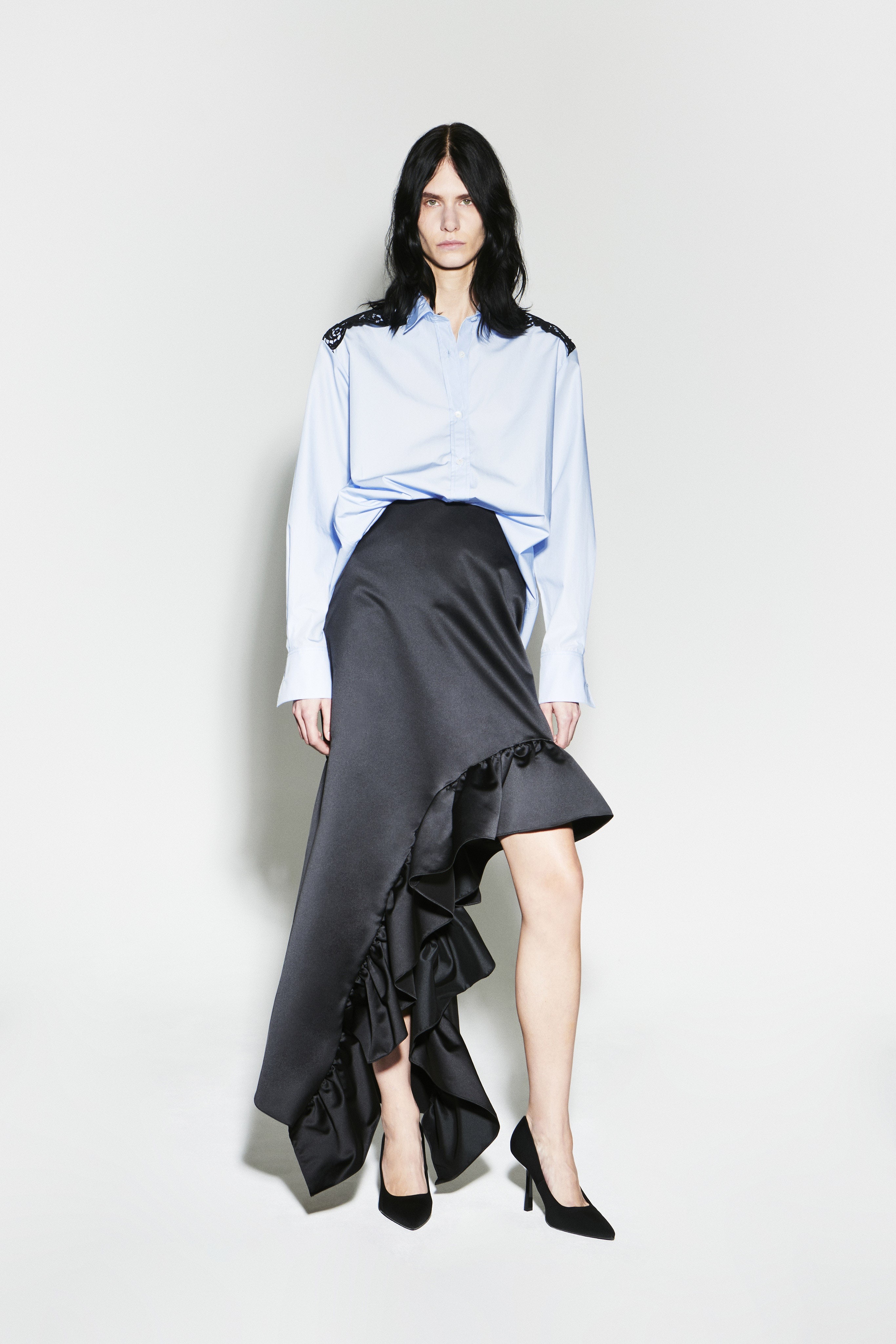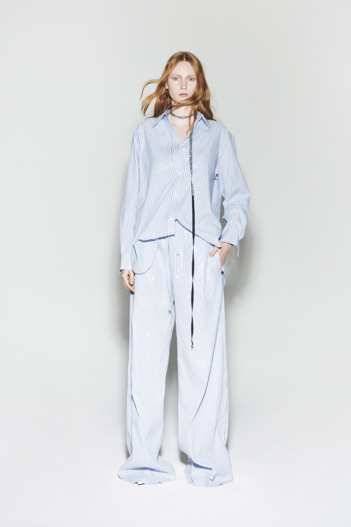 soigné pyjama ensembles; a classic poplin shirt juxtaposed with an asymmetric skirt that