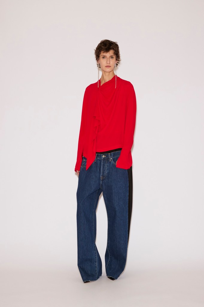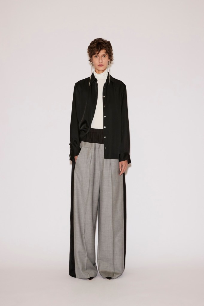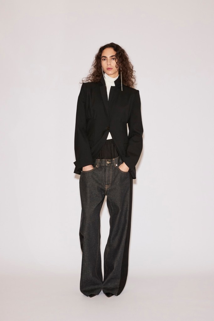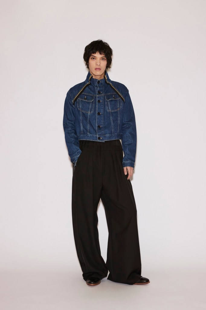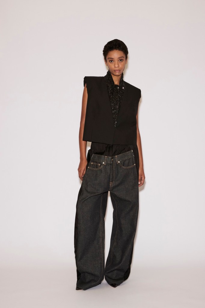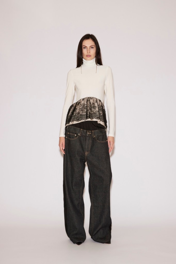 At the foundation lies the “Low Pant”: tailored wool trousers or jeans anchored to a fluid under-layer. They sit at the waist yet carry the ease and slouch of a dramatically dropped cut.