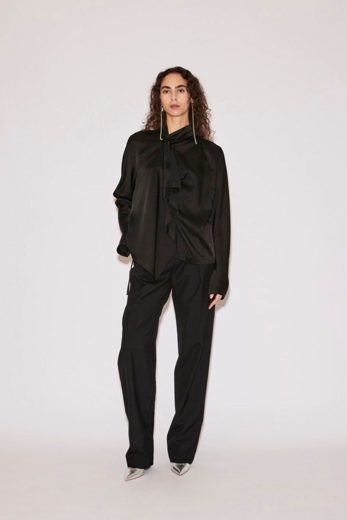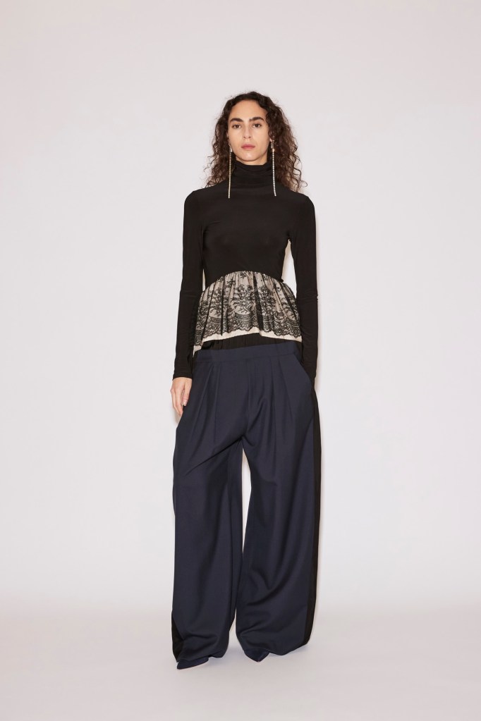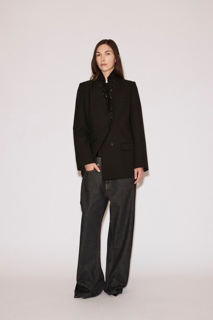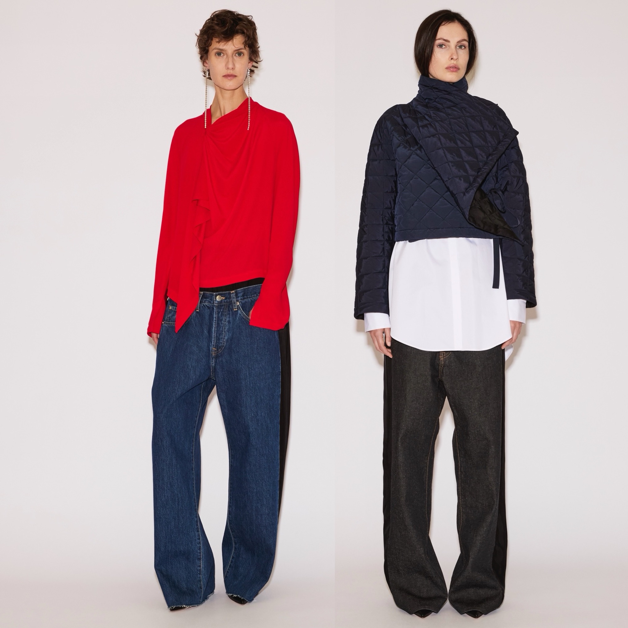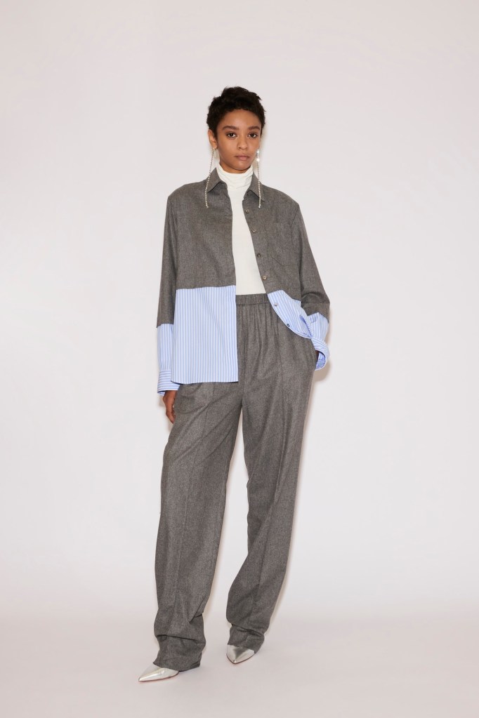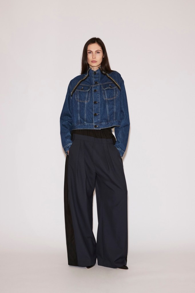 At the foundation lies the “Low Pant”: tailored wool trousers or jeans anchored to a fluid under-layer. They sit at the waist yet carry the ease and slouch of a dramatically dropped cut.