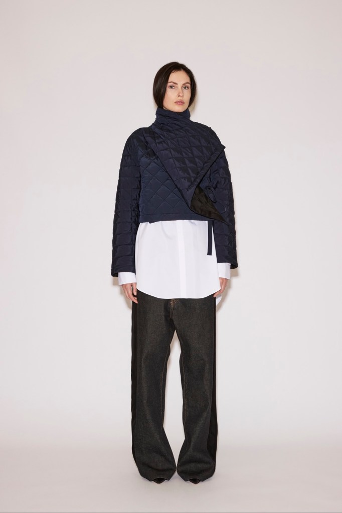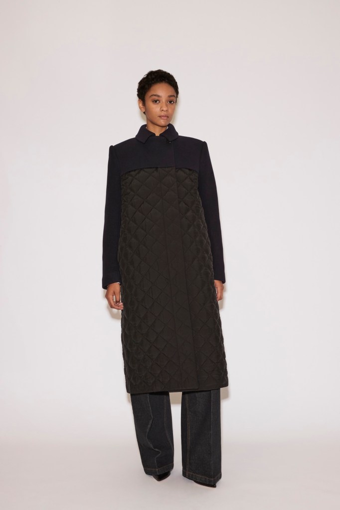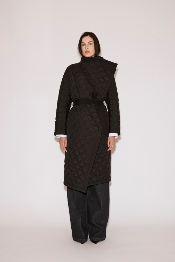 A fluid trench and a padded nylon coat are shaped like kimonos, offering generous ease and movement.