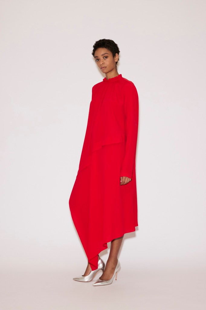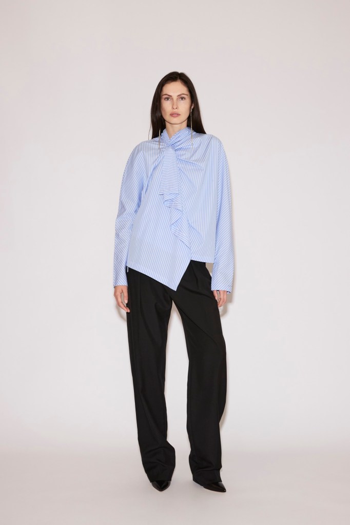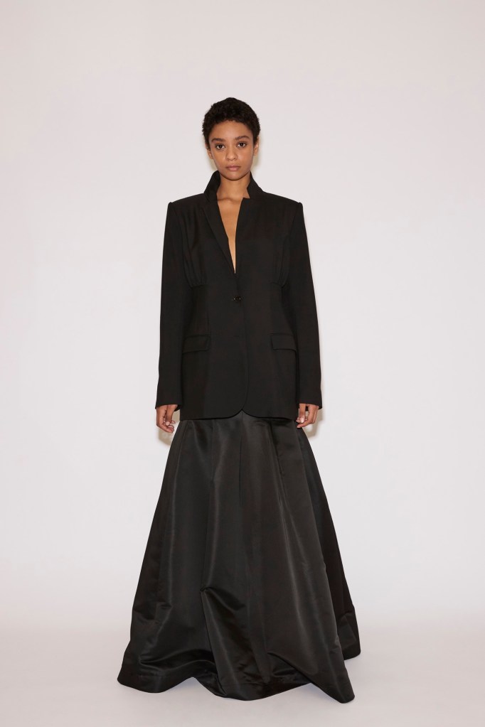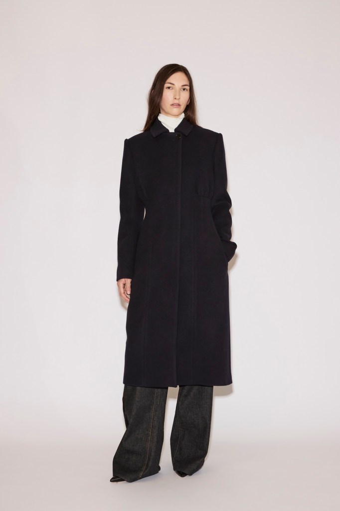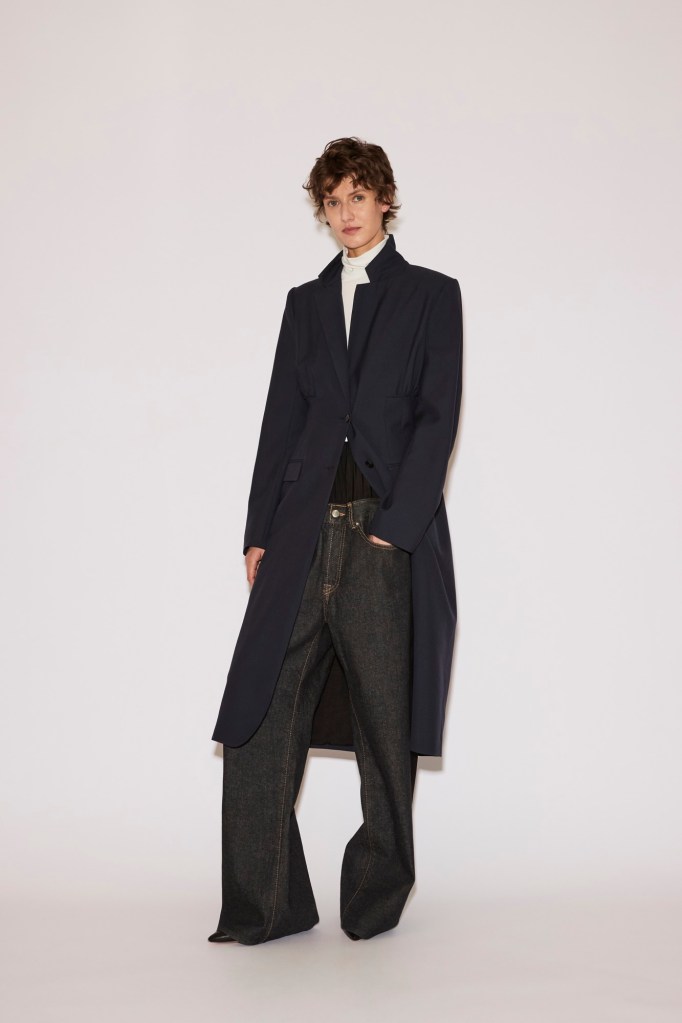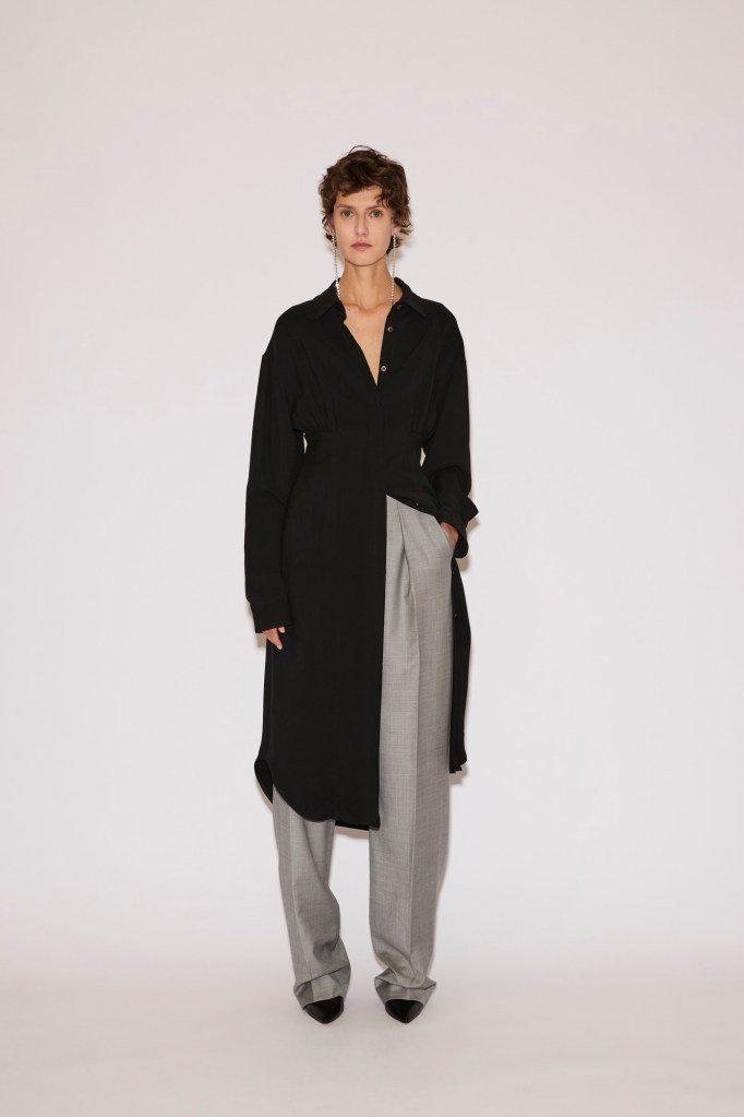 A series of tailored pieces—a coat, blazer, shirt, and shirtdress—are shaped close to the body with darts and gathers, designed to contour and elongate the silhouette. Paired with jeans, straight trousers, or a sweeping floor-length tulip skirt, they adapt effortlessly to different moods and occasions.