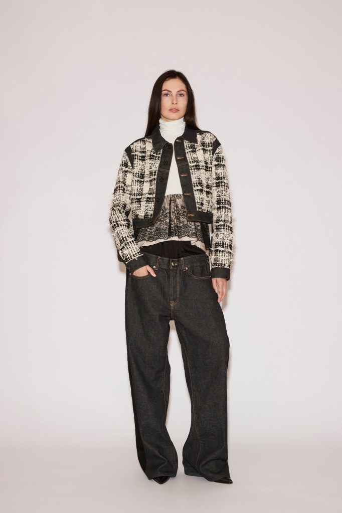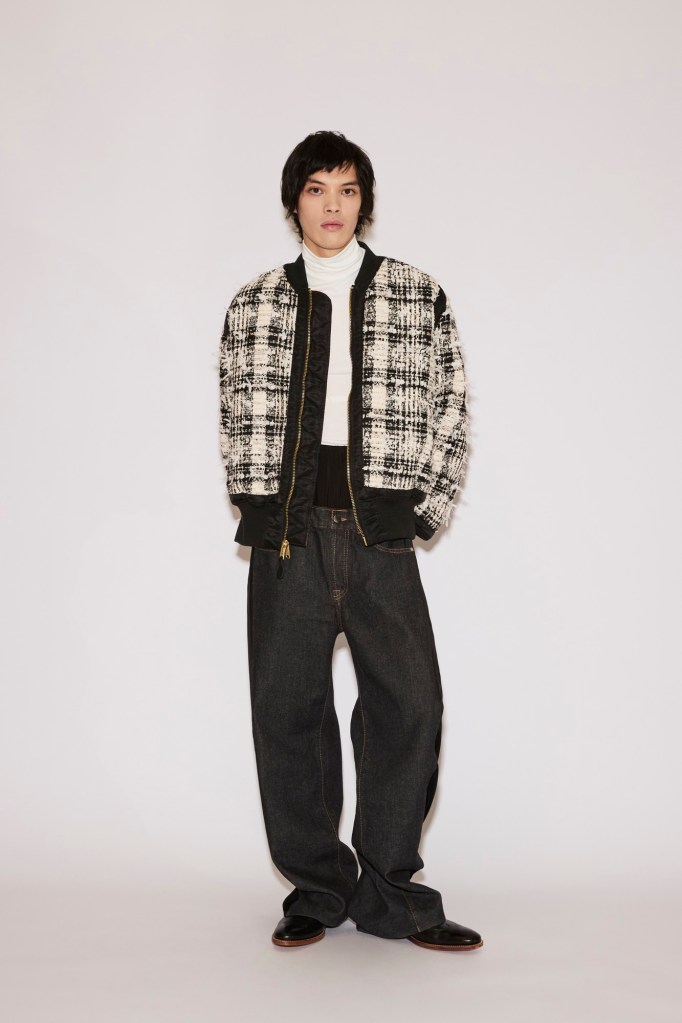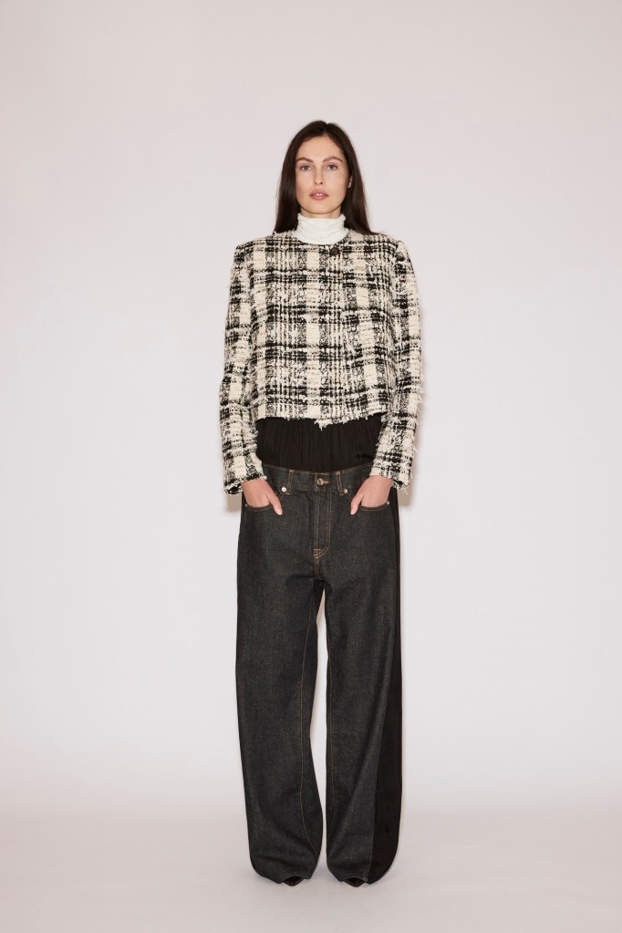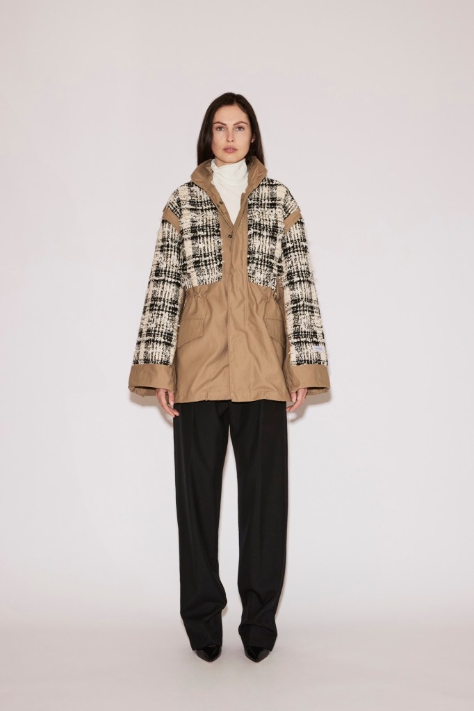 Classic tweed is cut into a boxy, structured jacket, as well as spliced into a nylon bomber, or fused with denim to reinvent these urban staples.