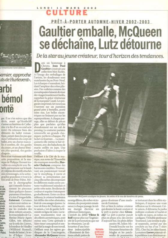 ‘Gaultier emballe,McQueen se déchaine, Lutz détourne’ LIBERATION