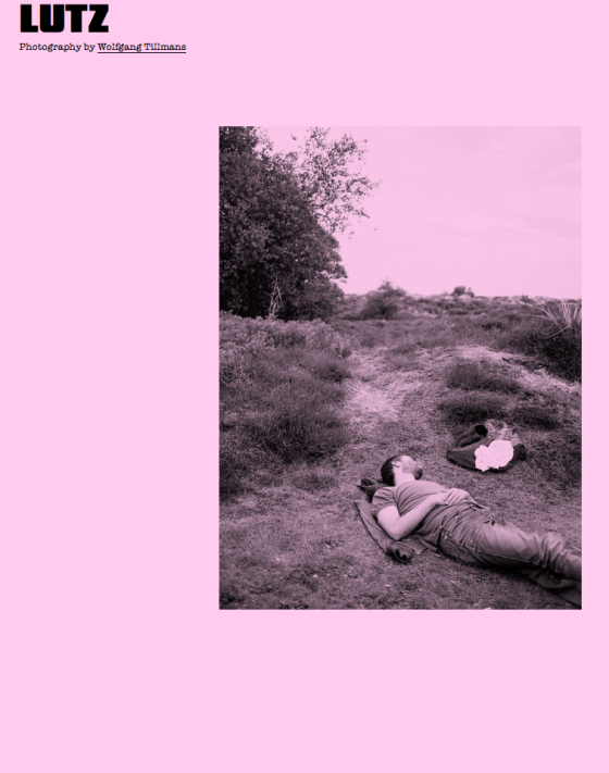 Jop van Bennekom interviews Lutz in BUTT Magazine: ‘Lutz has been a familiar face to me for at least ten or twelve years. But I never knew who he really was, this guy that kept appearing as a model, and more often as a best friend, in lots of Wolfgang Tillmans’ pictures — until I met him a couple of years ago when he was starting up a fashion label under his own name in Paris. Last spring I sat down with Lutz Huelle, that’s his full name, in his spacious Paris apartment and office on the fancy Rue de Rivoli. We talked for hours and hours, and after sifting through the original 24,000-word transcript, this is what remained.’