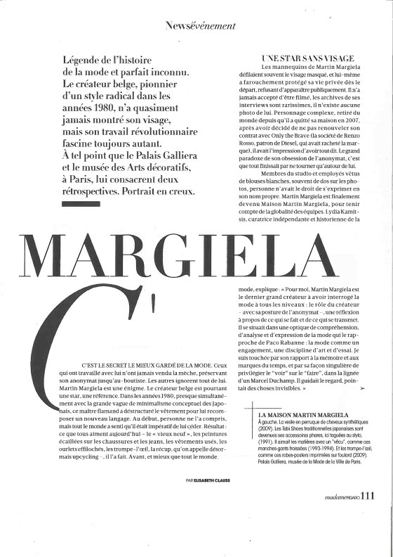 ´..mais Lutz Huelle est le Surréaliste le plus rationnel de la Mode Contemporaine et, sans conteste, s’il en fallait un, le fils le plus spirituel de Martin, qui suit sa propre voie.’ Elisabeth Clauss on the Martin Margiela Rétrospective at Musée Galliera in Paris in MADAME FIGARO