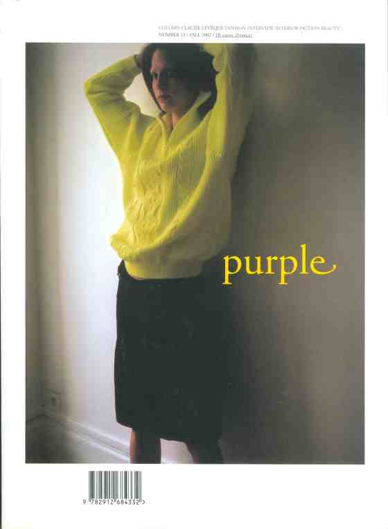 PURPLE FASHION FALL/WINTER 2002 PHOTOS GIASCO BERTOLI STYLING LUTZ HUELLE Italian Photographer Giasco Bertoli collaborated with German fashion designer Lutz … More